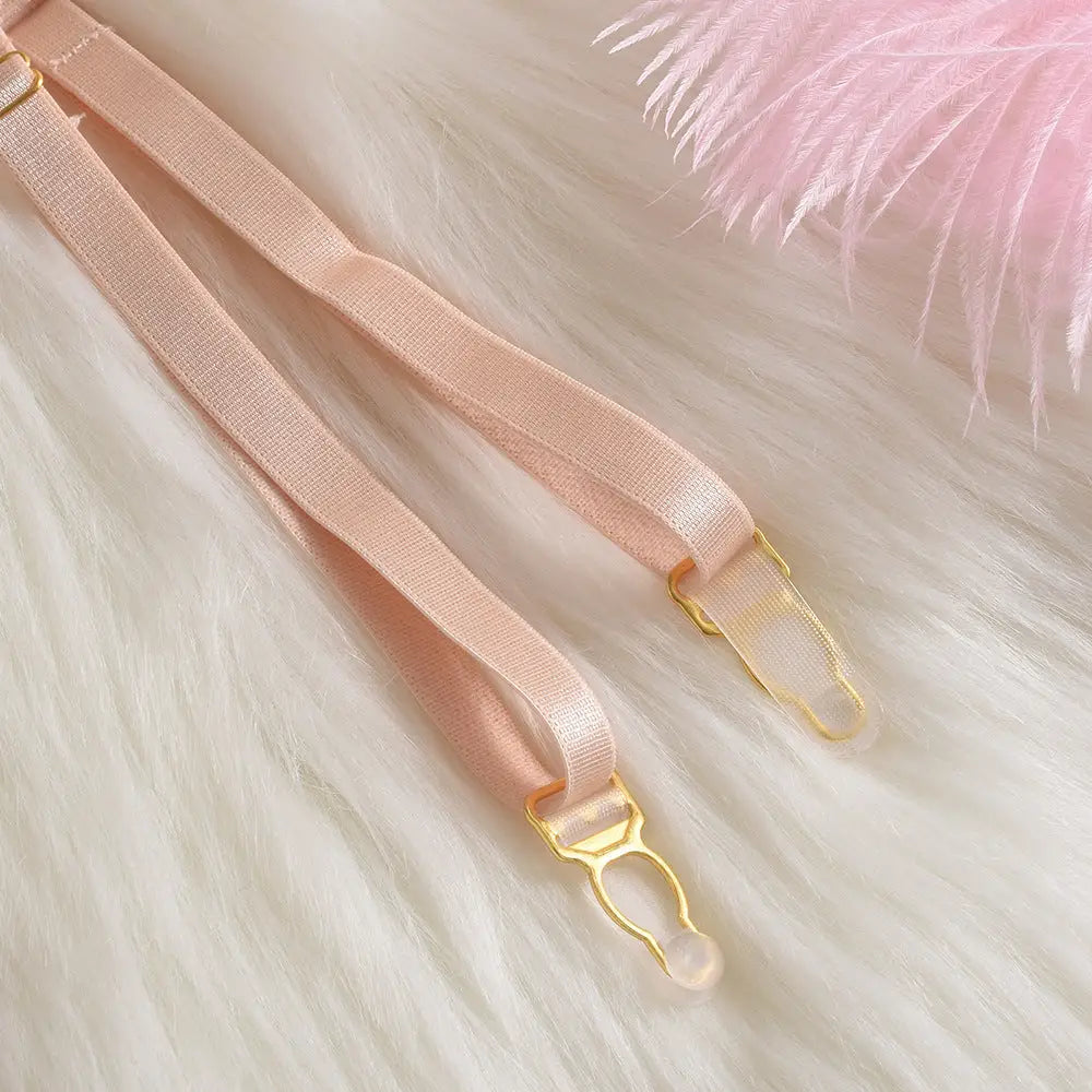 Every element of this embroidery lingerie is a deliberate touch of beauty. The sheer mesh lingerie set serves as a canvas for intricate floral embroidery that cascades across the body. At its heart, a delicate pendant accent rests gently, drawing the eye and adding a final note of luxury.